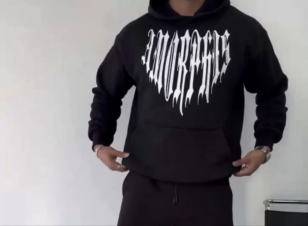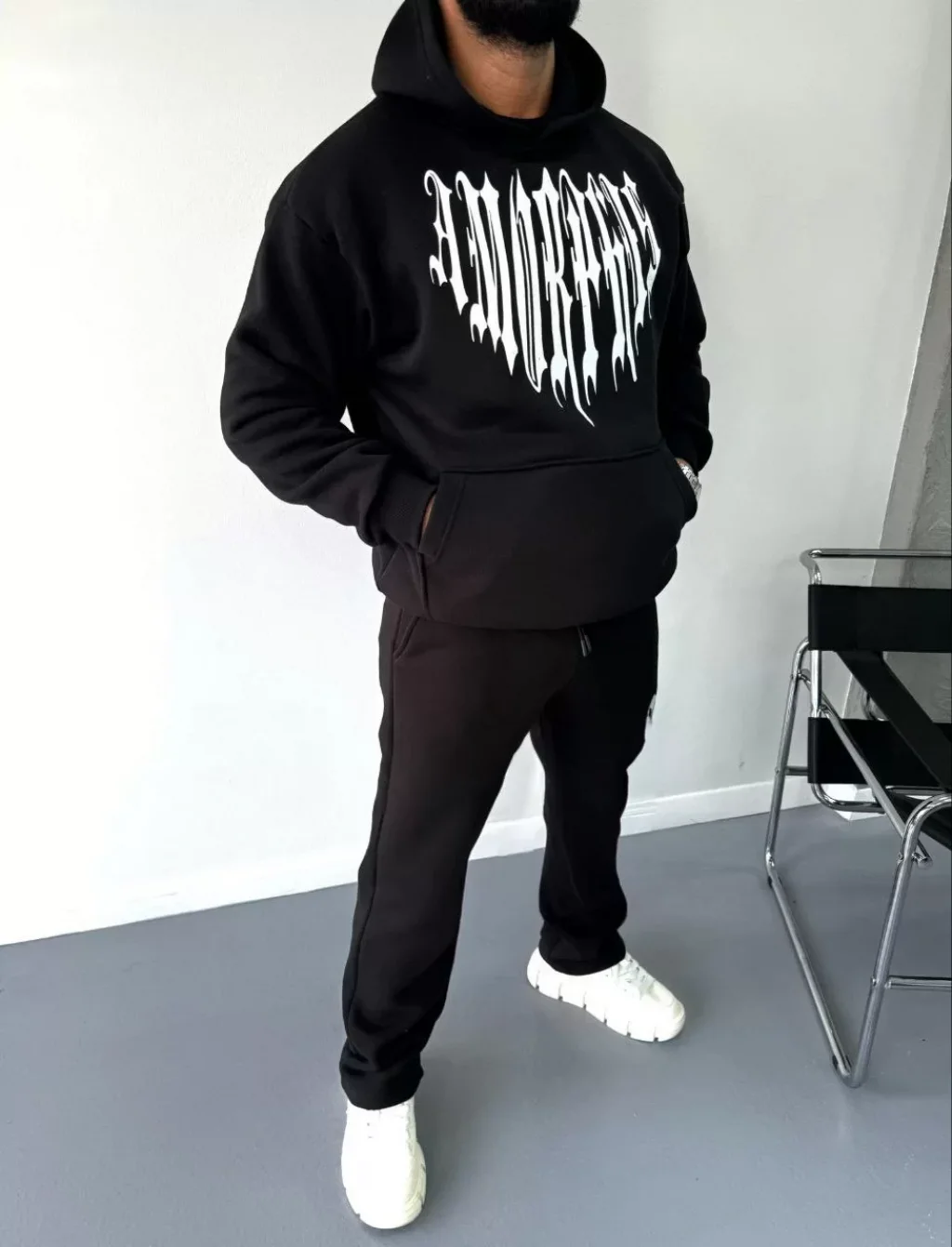 Uzun Kol Kapüşonlu Baskılı SweatShirt - Siyah