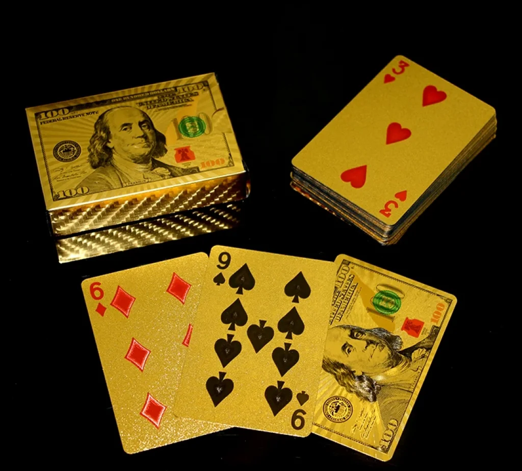 VARAKLI DOLAR OYUN KARTIÜrün ÖzellikleriLüks ve dikkat çekici tasarımıyla öne çıkan varaklı dolar oyun kartları, altın kaplama görünümüyle oyun deneyiminizi özel bir hale getirir. Dolar temalı tasarımı, şık ve gösterişli bir görünüm sunarken, dayanıklı ve esnek malzemesi sayesinde uzun ömürlü kullanım sağlar. Standart oyun kartı ölçülerinde üretilmiş olup, poker, blackjack ve diğer kart oyunları için idealdir. Eğlenceyi ve prestiji bir araya getiren bu set, hediye olarak da mükemmel bir seçenektir.Paket İçeriği1 Adet Varaklı Dolar Oyun Kartı Destesi