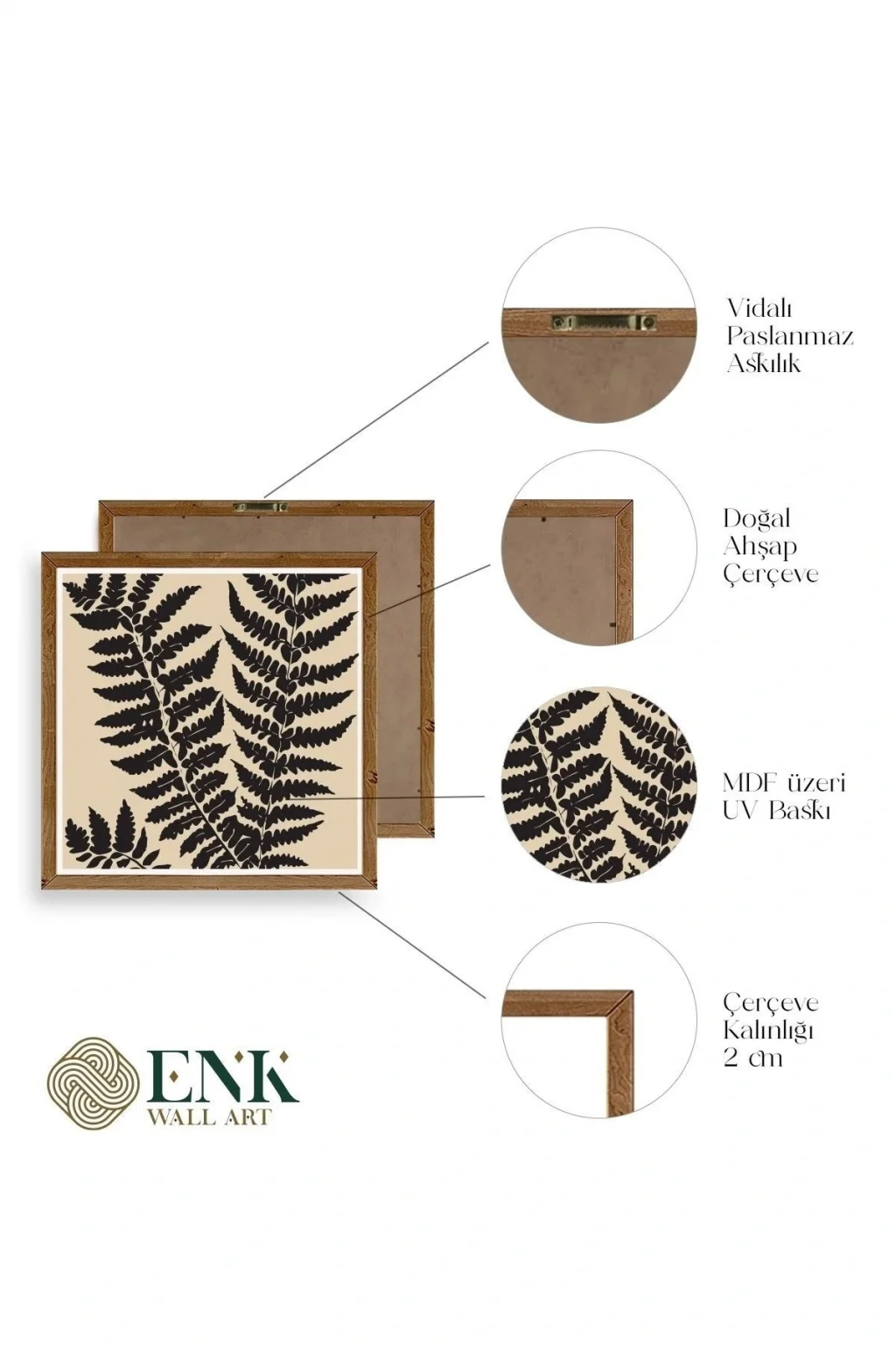 Tablolarımız gerçek ahşap çerçevelidir, çerçeve görünümlü değildir. ; ENK Wall Art Olarak Ahşap Çerçeveli Tablolar Üretiyoruz. ; Tablolarımız tek parça, 3 Parça, 5 Parça ve daha çok kategoride tasarımcılarımız tarafından ev ve ofisleriniz duvarları süslemek için tasarlanmaktadır. ; Ahşap Çerçeveli Duvar Tabloları ile yaşam alanlarınıza yepyeni bir görünüm kazandırın. ; Yıllarca dayanacağından emin olduğumuz sağlam çerçevelere sahip yüksek kaliteli ahşaptan üretilmiştir. ; İster bir köşeyi süslemek isteyin, ister evinizi yenilemek , bu ahşap tablolar herhangi bir yaşam alanına stil ve işlev getirecektir. ; Duvara kolay bir şekilde monte edilir. ; Uzun ömürlü kullanım için sağlam ahşap çerçeveden yapılmış, dayanıklı ve güçlü. ; Duvara monte edilebilir tasarımı, yaşam alanlarında veya yatak odalarında duvara kolayca asılmasını sağlar. ; Pürüzsüz üst yüzeyi temiz kalmayı kolaylaştırır. ; Herhangi bir stile uyacak şekilde çeşitli renklerde gelir. ; Kolay yeniden düzenleme için hafif ve portatif. ; Küçük oturma odaları veya dar alanlar için mükemmel boyut. ; Eve taşınma hediyesi olarak idealdir. ; Herhangi bir evin dekorunu süslemek için harika bir yol. ; Herhangi bir modern veya çağdaş iç tasarıma mükemmel bir katkı. ; Tablo içi 3 mm mdf (ahşap) malzeme üzeri uv baskıdır. ; Renkler canlı ve solma yapmaz. ; Kırılma, bükülme ve çizilmeye karşı dayanıklıdır.;