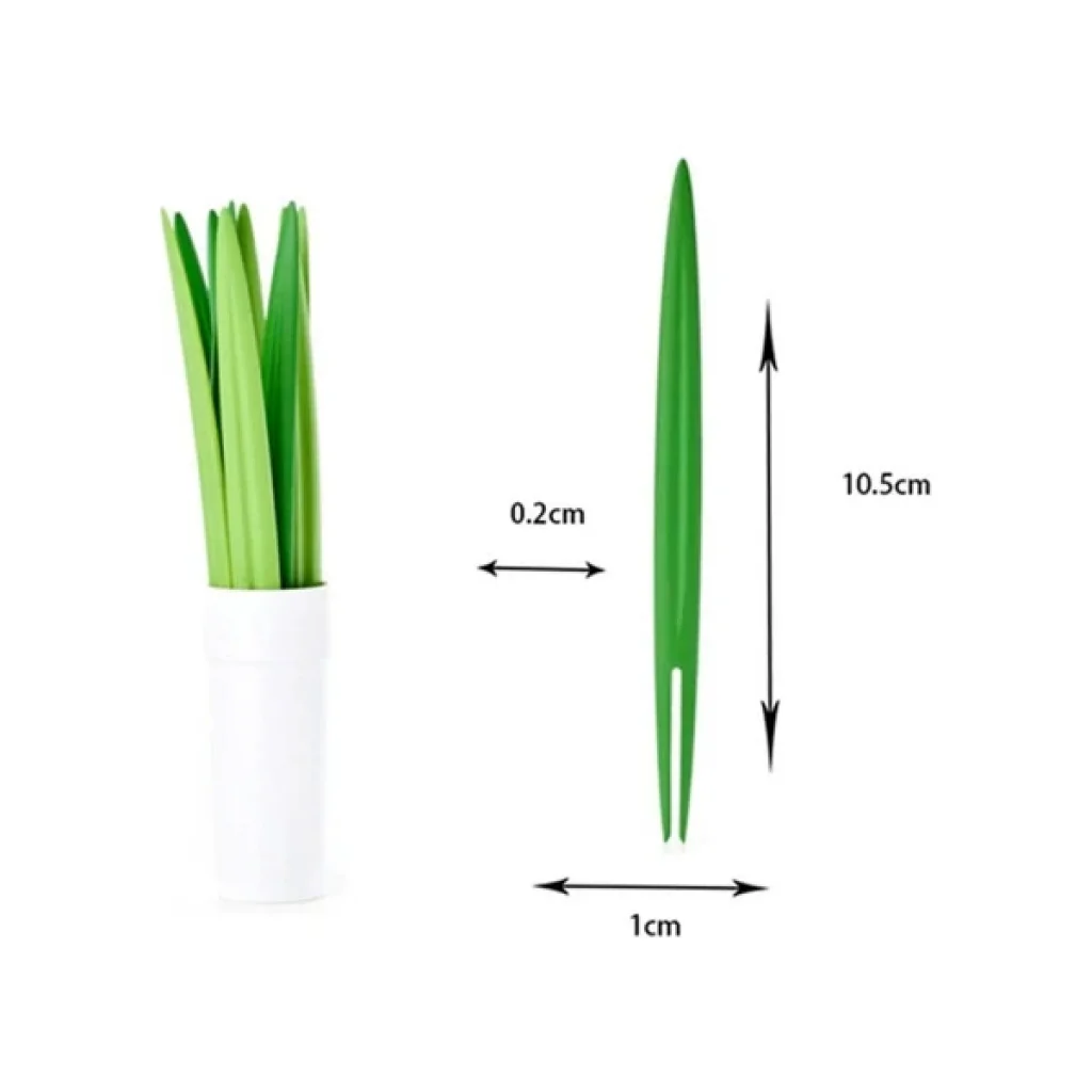 YAPRAK ŞEKLİNDE KOKTEYL ÇUBUKLARIÜrün Açıklaması Yaprak Şeklinde Kokteyl Çubukları , hem işlevsel hem de dekoratif bir ürün olarak sunumlarınıza değer katar. Yaprak tasarımı, doğal ve şık bir görünüm sağlarken, dayanıklı malzemesi sayesinde tekrar tekrar kullanılabilir. Kokteyl partileri, davetler veya günlük sunumlar için ideal bir aksesuardır.Ürün Özellikleri Her pakette 10 adet kokteyl çubuğu bulunur ve ürün kullanışlı bir saklama kabıyla birlikte gelir. Gıda temasına uygun, BPA içermeyen plastikten üretilen bu çubuklar, dayanıklı yapısı sayesinde uzun ömürlüdür ve yeniden kullanılabilir. Çift uçlu tasarımı, zeytin, peynir, meyve gibi küçük atıştırmalıkları kolayca tutmanıza olanak tanır.Kolay temizlenebilir yüzeyi sayesinde elde yıkamaya uygundur ve uzun süre hijyenik bir kullanım sağlar. Kokteyl sunumlarından meze tabaklarına, atıştırmalıklardan özel dekorasyonlara kadar geniş bir kullanım alanı sunar. Dayanıklı ve hafif malzemesi, kolay taşınabilirliği ile partiler ve davetler için mükemmel bir aksesuardır. Paket İçeriği10 adet yaprak şeklinde kokteyl çubuğu.