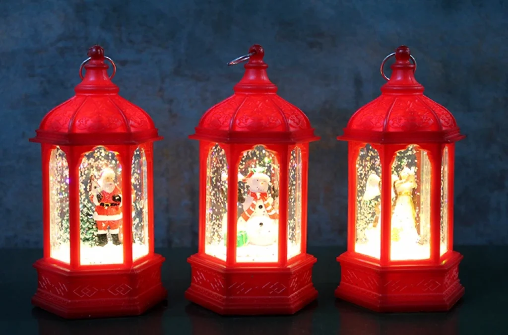 Yılbaşı Temalı Işıklı Kar Küresi Kırmızı Tasarım
