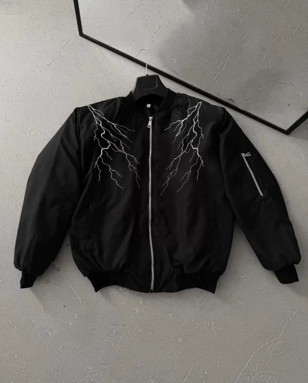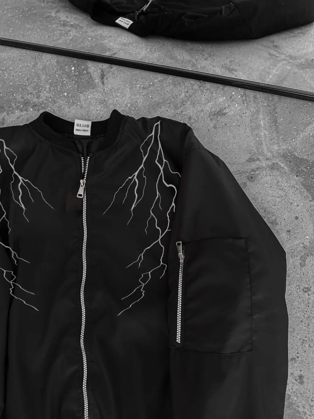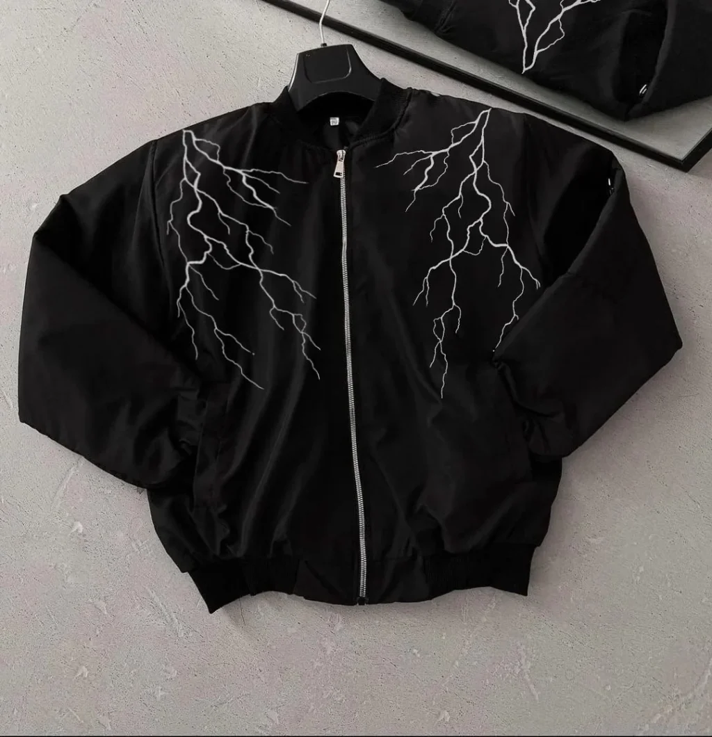 Yıldırım Baskılı Uzun Kol Bomber Ceket - Siyah