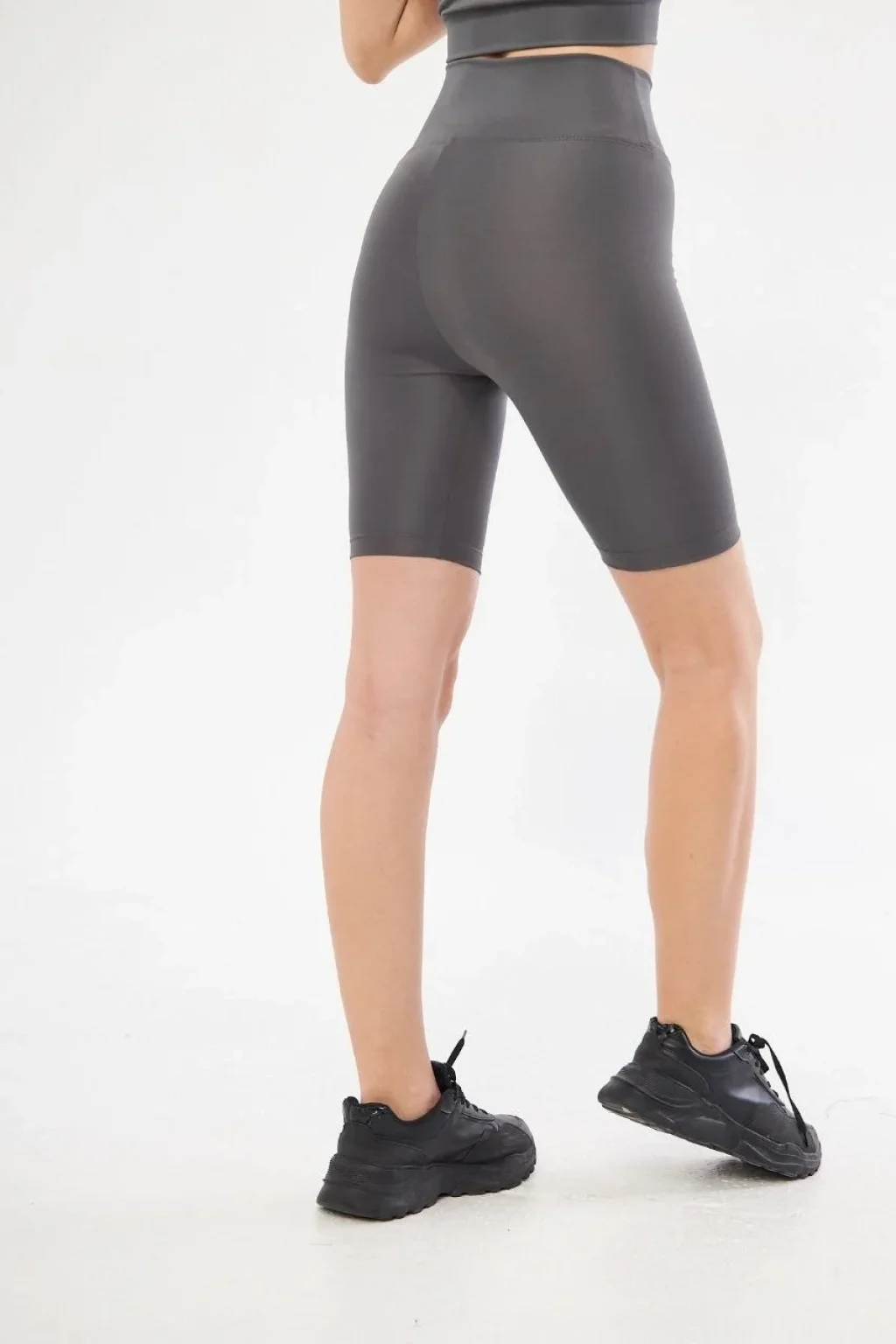 Yüksek Bel Biker Sporcu Şort - Füme