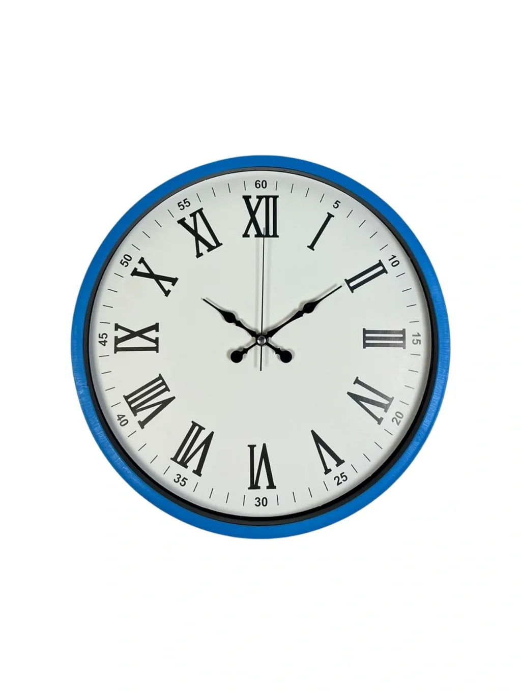 Modern çizginin enerjik tonlarla birleştiği 36 cm mavi duvar saati, hem dekoratif hem de fonksiyonel yapısıyla yaşam alanlarında dikkat çeken bir tasarım sunar. Beyaz zemin üzerine konumlandırılmış büyük Roma rakamları, hem klasik bir şıklık sağlar hem de uzak mesafeden kolay okunabilirlik sunar. Ürünün ön yüzeyi 2 mm kalınlığında gerçek cam ile üretilmiştir. Bu gerçek cam yüzey, plastik camlı ürünlere göre çok daha dayanıklı olup sararma yapmaz, çizilmelere karşı daha dirençlidir ve kadranın net görünmesini sağlar.