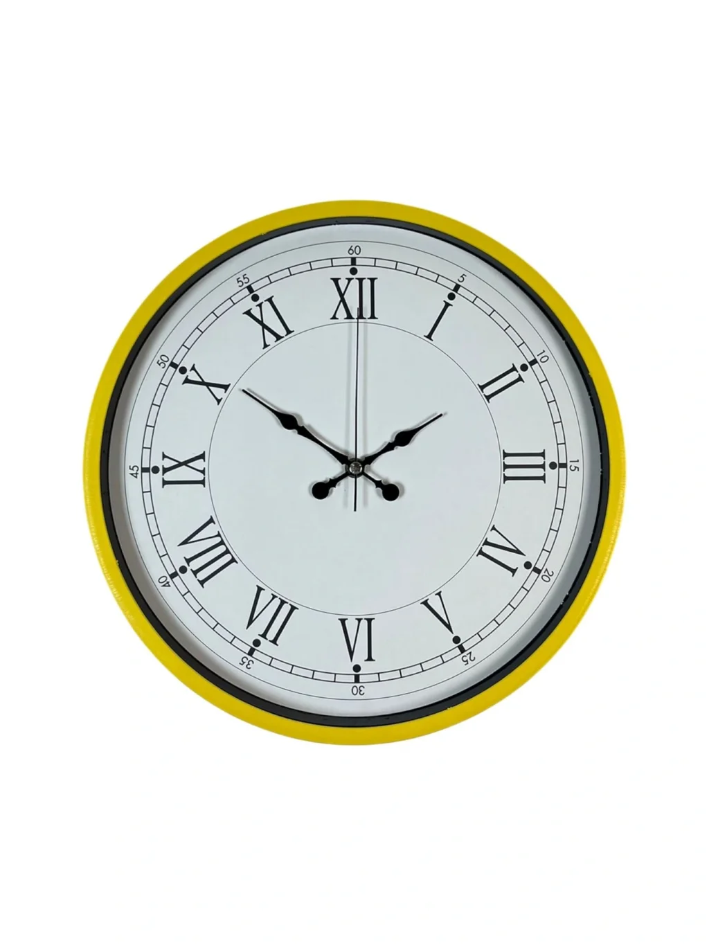 Modern dekorasyonun enerjik ve canlı dokusunu evinize taşıyan 36 cm Sarı Renk Dekoratif Duvar Saati, sade tasarımı ve dikkat çekici çerçeve rengi ile duvarlarınıza estetik bir dokunuş sağlar. Şık Roma rakamlı kadranı, zarif akrep-yelkovan tasarımı ve yüksek kaliteli baskı yüzeyi ile hem klasik hem modern tarzlara mükemmel uyum sağlar.