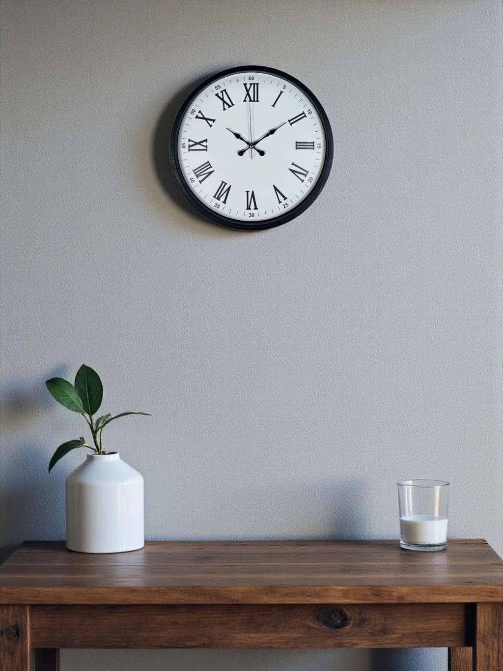 Siyah çerçeve rengi, beyaz zemin üzerine işlenmiş büyük ve okunabilir Roma rakamlarıyla güçlü bir kontrast oluşturarak uzak mesafeden bile net bir görüş sağlar. Sessiz akan saniye mekanizması, ses çıkarmadan çalışarak özellikle çalışma odası, yatak odası ve ofisler için ideal bir kullanım sunar. Klasik saat estetiğini sevenler için hem dekoratif hem de işlevsel bir üründür.