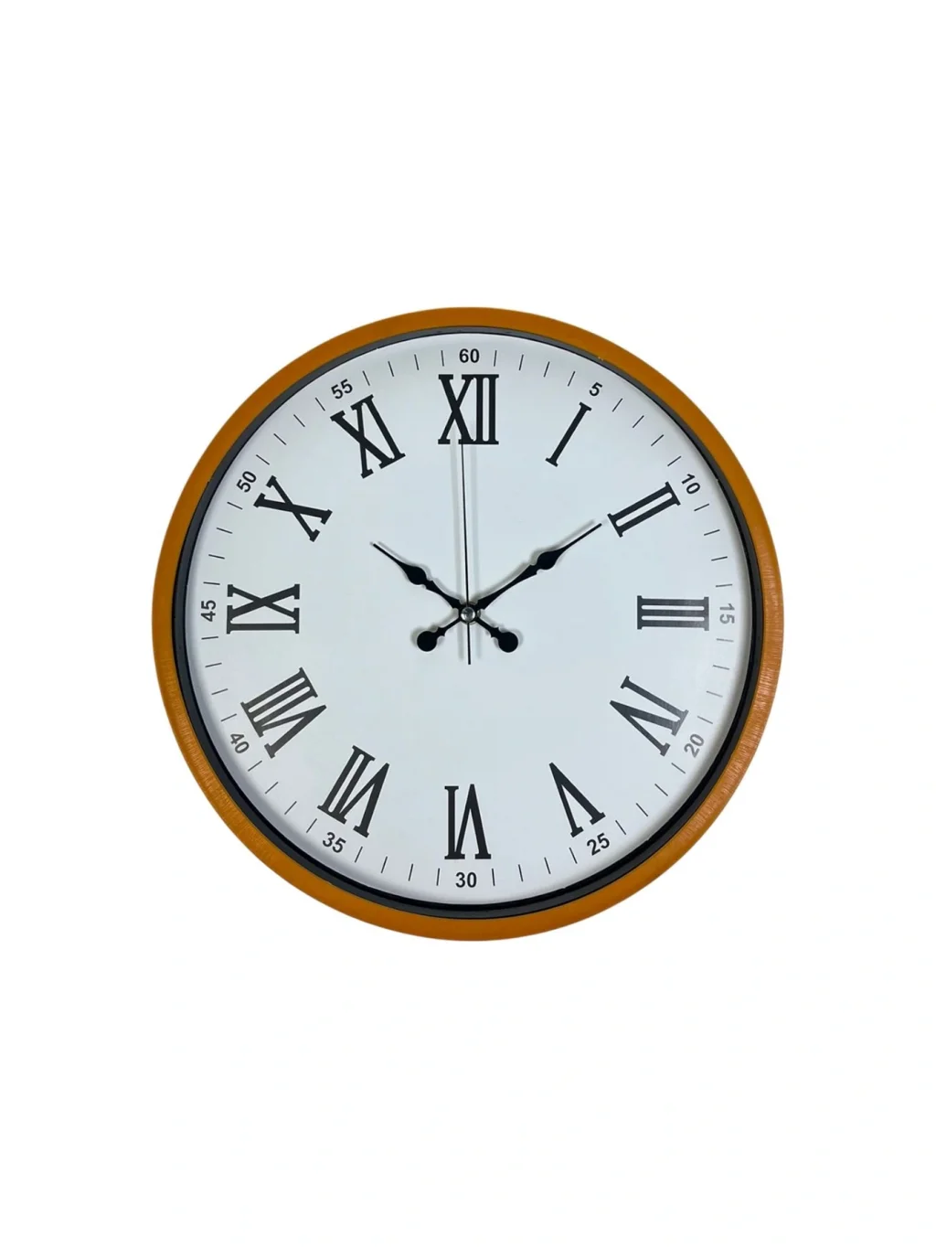Dekorasyona enerji ve canlılık katmak isteyenler için tasarlanan 36 cm turuncu duvar saati, klasik Roma rakamlı kadranı ve modern çerçeve tasarımıyla dikkat çeker. Beyaz zemin üzerine konumlandırılmış büyük ve belirgin Roma rakamları, hem estetik hem de yüksek okunabilirlik sağlar. Saatin ön yüzeyi 2 mm kalınlığında gerçek cam ile korunmaktadır. Gerçek cam, plastik camlara göre çok daha dayanıklı olup net görüntü sunar, zamanla sararma yapmaz, çizilmeye karşı daha dirençlidir ve ürüne premium bir görünüm kazandırır.