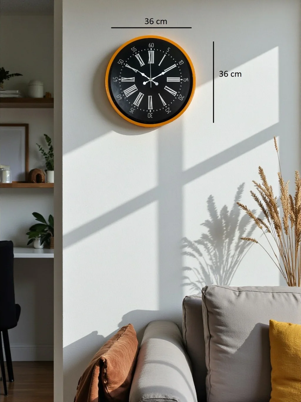 Canlı ve modern bir görünüm sunan 36 cm Turuncu Duvar Saati, enerjik rengi ve şık kadran tasarımı ile bulunduğu her ortamda dikkat çeken bir dekoratif parça hâline gelir. Turuncu çerçevenin siyah zemin ve beyaz Roman rakamlarıyla oluşturduğu kontrast, saatin hem modern hem klasik dekorasyonlarla uyumunu güçlendirir. Genç odaları, salonlar, ofisler, kafeler ve çalışma alanları için ideal bir tamamlayıcıdır.